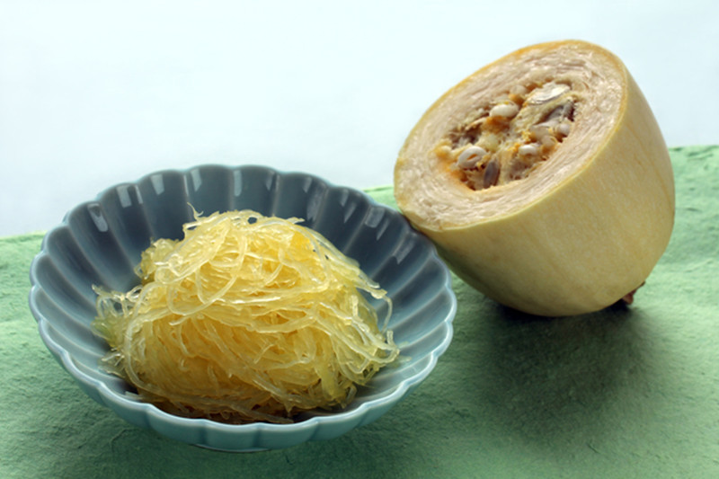 見た目は錦糸たまごのごとく、麺類のごとく。しかしその正体はかぼちゃ。別名「そうめんかぼちゃ」とも呼ばれるウリ科の食材、錦糸瓜。クセなくさっぱりのシャキシャキした食感が夏にふさわしく、かぼちゃの中では非常に低カロリーです。お酢でさっぱり食すのもよし、見た目通りに麺つゆでいただくのもよし。実はおもしろいことに、英語でもスパゲッティ・スカッシュ(Spaghetti squash)=スパゲッティ瓜と呼ばれているんです。
