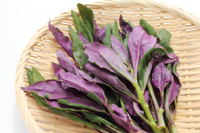 表面は深い緑色なのに、裏は美しい紫色の金時草。紫色が金時(キントキ)芋の色によく似ていることから、金時草と呼ばれるようになったといわれています。しかし、地方によっては「式部草」という名称で流通するところも。いずれにしてもおしゃれな名前です。
