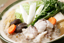 しょうゆベースが多いあんこう鍋ですが、車力はあんこう鍋も先々代が苦労の末生み出した特製味噌スープで仕立てます。特製の味噌スープで炊くことで、あんこうがだす出汁がコクを増し、あん肝のとろりとしたなめらかさが際立つんです。とがったところのない、ふくよかでまろやかなお鍋になります。よろしければ想像してみてください。まろやかな味噌スープでクツクツとあんこうやアンキモ、お野菜、お豆腐がゆっくりと煮えていく様を…。想像通り、やさしくも深く、しっかりとしたお味です。こちらも締めがとっても美味しいお鍋。加えてあんこうはビタミンB12やB1、ナイアシン等のビタミンBが含まれており、皮膚や粘膜の健康維持、そして貧血予防にも良いとされていますので、忘新年会の飲みすぎで疲れた胃にもうれしいですよ。江戸の時代から5代珍味であり歴史的にも名高い高級魚あんこう。せっかく食すなら、ぜひ秋葉原の車力でお味わい頂きたいとおもっております。車力の鍋こそ、あんこうの持つ旨みをどこよりも引き出すあんこう鍋と自負しています。